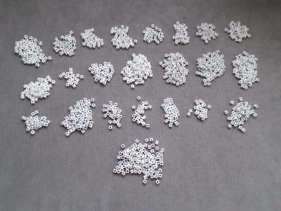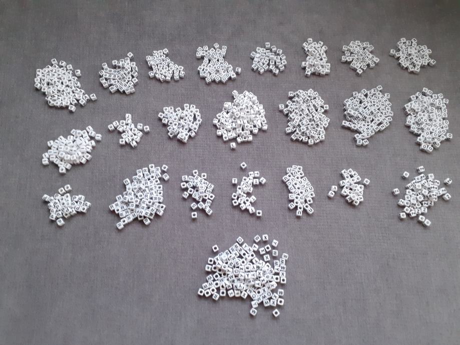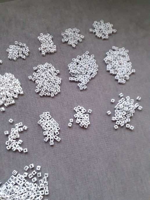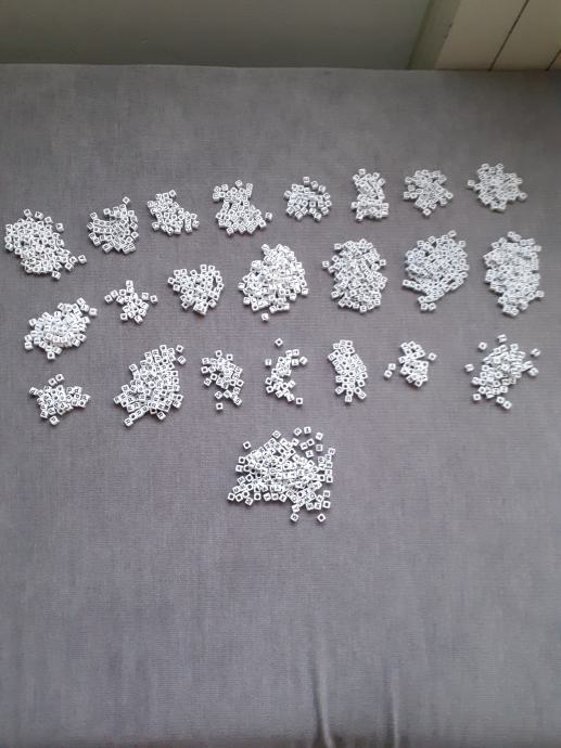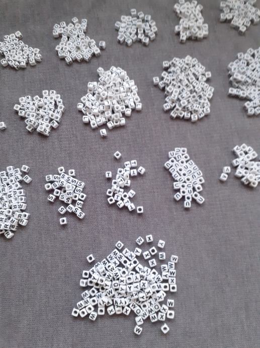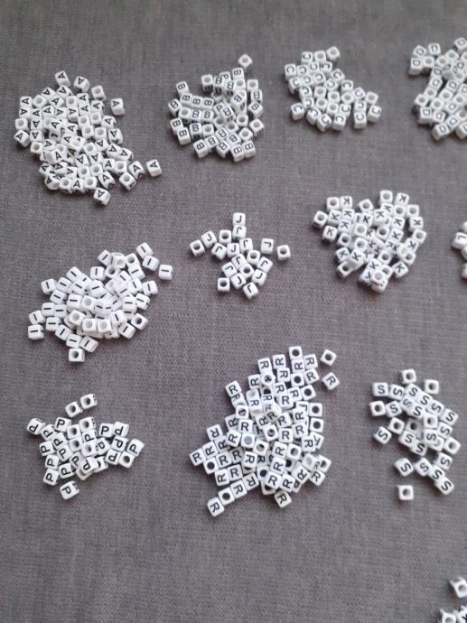 Plastična slova za izradu vezica za dude i sličnog nakita. Cijena je 5 € za osnovni set koji sadrži 230 slova - 20 slova A i po 10 komada svih ostalih. Može i drukčija kombinacija. Imam u ostalim oglasima i raznog drugog repromaterijala. U Zagrebu i Karlovcu moguća je primopredaja. Pogledajte i ostale moje oglase, na više kupljenih stvari popust.