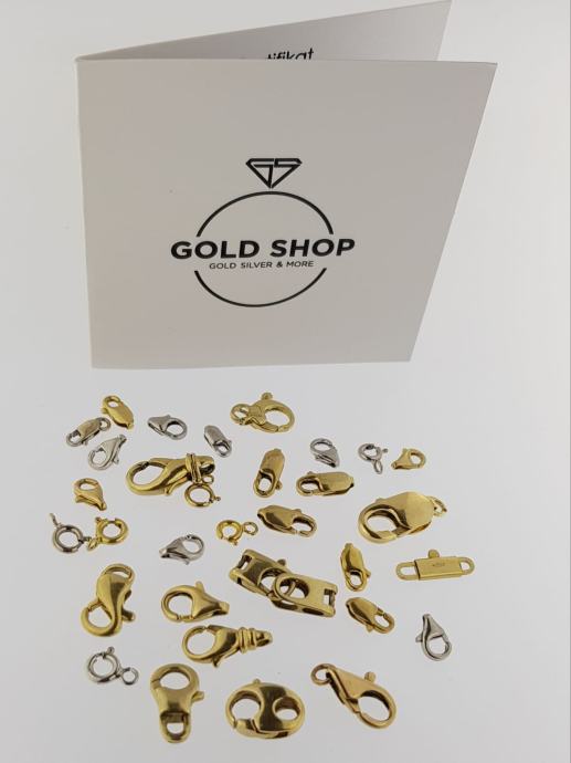 Prodaja zlatnih kopči različitih dizajna, oblika, dimenzija, karataža i boja.