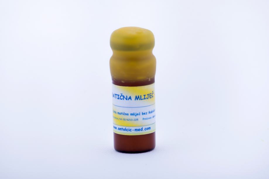 MATIČNA MLIJEČ – to je homogena gusta, neprozirna i kremasta tvar bijele do blijedo žućkaste boje, viskoznosti vrhnja. Ima karakterističan oštri miris i specifičan kiselkasti okus. Odličan je biostimulator i antioksidans. Sadrži neophodne elemente za dobru psihofizičku aktivnost organizma, obnavlja stanice, poboljšava pamćenje, usporava starenje, jača otpornost organizma te pomaže kod iscrpljenosti i umora. Matičnu mliječ prodajemo svježe zamrznutu u zatamnjenim penicilinskim bočicama po 10 grama.