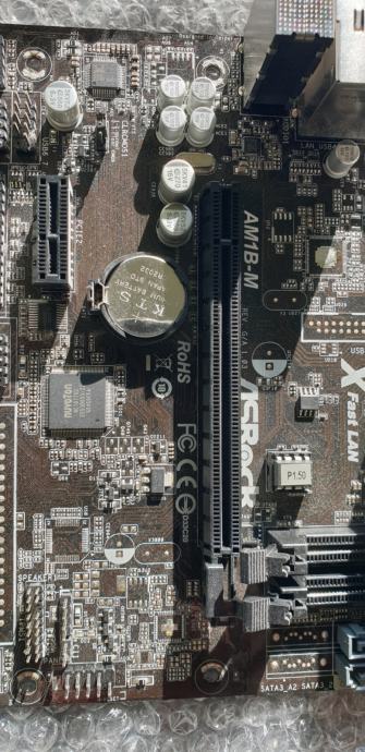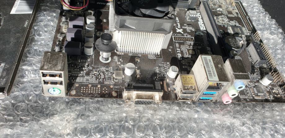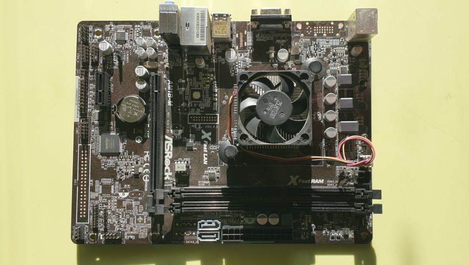 Matična ploča ASROCK AM1B-M sa procesorom Athlon 5150 socket AM1 i limićem. DDR3. Procesor ima integriranu Radeon R3 Series GPU.
