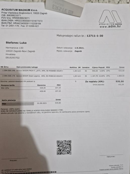 Matična ploča kupljena u 1.9.2021. Garancija traje još 2. godine.