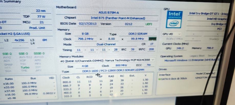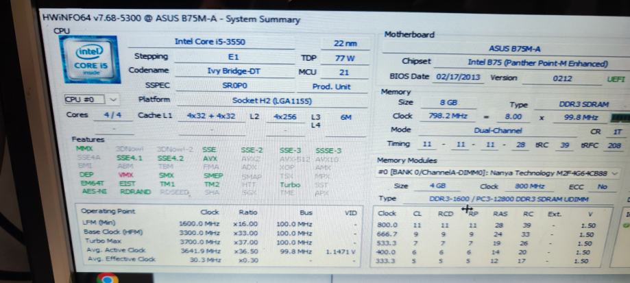 ASUS B75M-A + Intel Core i5-3550 + 8 GB DDR3 RAM