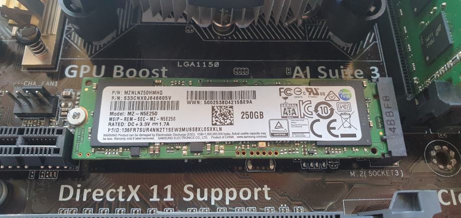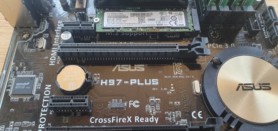 Prodajem komplet koji uključuje matičnu ploču Asus H97-Plus s procesorom Intel Core i5-4590 i 32GB RAM memorije, uz 250GB M.2 SSD disk.