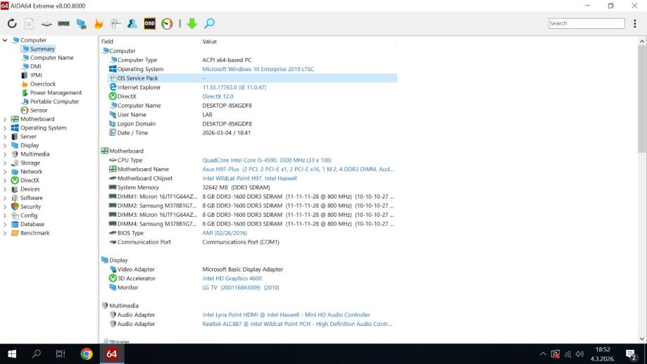 Asus H97 Plus + i5-4590 + 32GB Ram + 250GB SSD