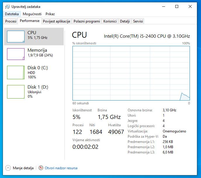 - Tip utora procesora