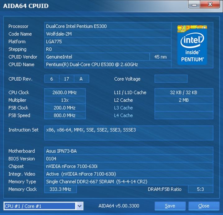 Uz matičnu ploču dolazi i procesor (Pentium DualCore E5300, 2.6GHz, 2MB L2 cache, 800MHz FSB).