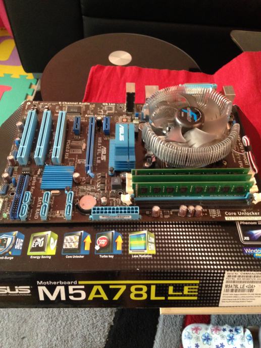 Ispravna maticna sa kutiom.Info nahttps://www.asus.com/Motherboards/M5A78L_LE/