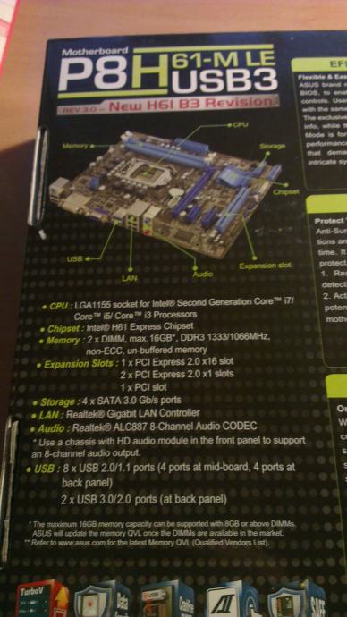 CPU: LGA 1155 socket for Intel Second Generation Core i7/ Core i5/ Core i3 Processor