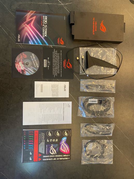 Uz matičnu ploču dolazi originalna kutija,WiFi 6 Antena za bežićni internet,sva dokumentacija,CD,naljepnice, dodatni kablovi koje nisam nikada koristio, još su u originalnom pakiranju neotvarani.