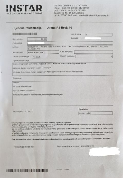 Nova garancija 3 godine teče od početka 2. mjeseca.