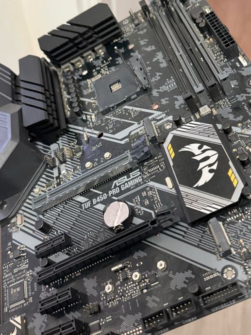 MBO: ASUS TUF B450 PRO-GAMING matična korištena do nedavno bila izvađena iz builda radi upgrade-a stara je otprilike 4 godine (IO shield, backplate za cooler)