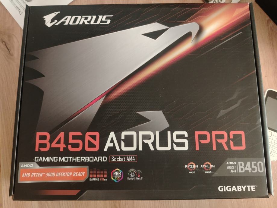 Maticna ploca B450 Aorus Pro, AM4 Socket. RGB Fusion 2.0. Sve radi normalno.