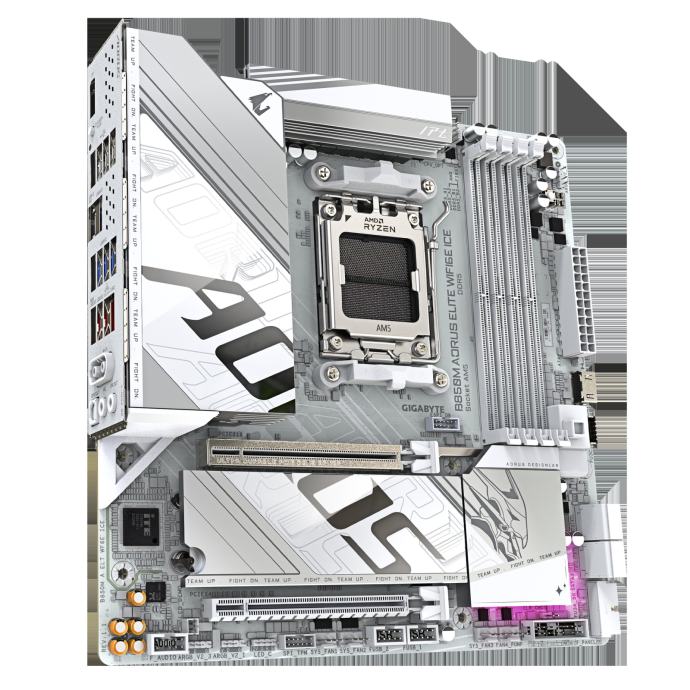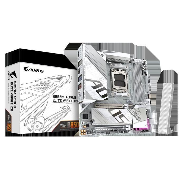 GIGABAYTE AORUS ELITE B850M matična ploča kompletno bijela- sa pci gen5 utorom za najnovije graficke kartice, ugrađen wifi6 i vanjska antena skupa sa maticmom