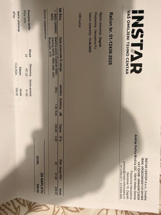 Prodajem novu Gigabyte B850 Gaming Wifi6 matičnu ploču.