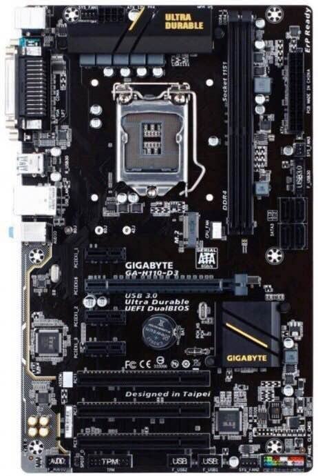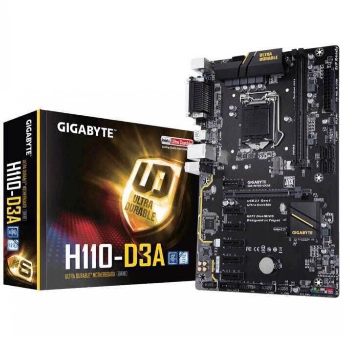 Matična ploča Gigabyte GA-H110-D3A, 1151, D4, S3, U3, DVI, Mining rig, ATX.