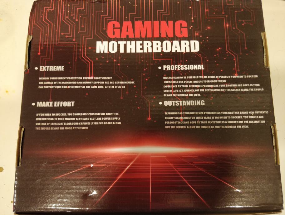 MBO: Huananzhi x99 -P4 socket LGA2011-3 , 4 x DDR4 memory slot,Max support 128GB, · 2xSATA2.0 3Gbps,1xSATA3.0 6Gbps, 1xPCI Express3.0x16,1xPCI Express2.0x1· 1xM.2 2280 NVME PCIEX4 3.0&1xM.2 NGFF SATA 3.0, 6x USB 3.0+2.0