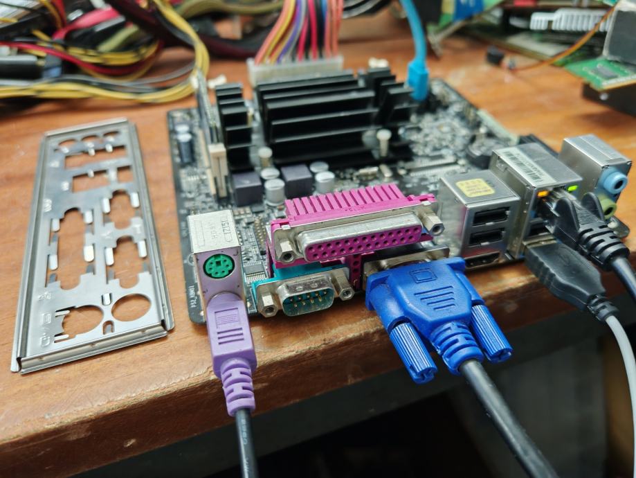 Od priključaka nudi VGA, DVI, LAN, USB priključke te audio izlaze. U paketu se nalazi i I/O štit.