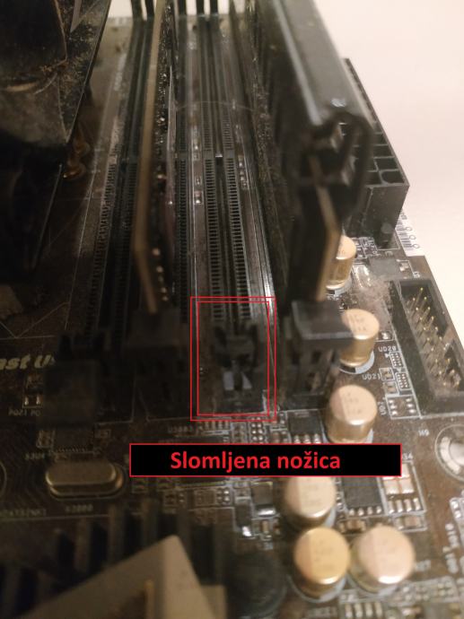 - matična je ispravna ali od 4 slota za rame na jednom slotu je slomljena nožica