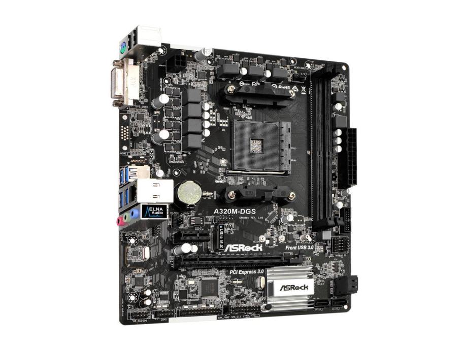 A320M-DGS, AM4, AMD A320, DDR4, Broj utora 2, 2133,2400,2666,2933,3200 MHz, 1 PCIe 3.0 x16 , 1 PCIe 2.0 x1, SATA3 4, RAID 0,1,5, 8-kanalni audio, 1x 10/100/1000 Ethernet, USB 3.0 4, USB 2.0 2, mATX, M.2 1