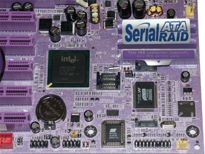 On-Board SATA 2 x Serial ATA connectors supporting 2 Serial ATA HDDs. (by ICH5)