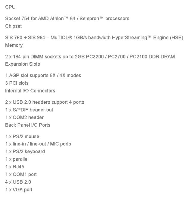 MODEL WinFast 760M02-GX-6LRS Socket 754