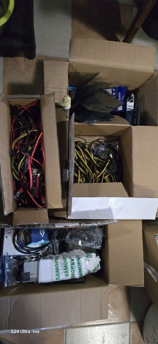 Lut ploča za majnanje za 24/36 grafika 3 Esonic svaka po 12 utora , ploče sa ramom i procesorom ddr4,1 nova, 2 ploče po 6 utorak isto sa profesorom...risere preko 30 kom nešto novih, serversko napajanje kablovi,slusalice, dva nova kućišta svaki po 12 grafika, RAZNI produžeci,procesor,2 ssd 240 i 120 gb termalne paste,ventilatori itd...sve za 199 eura,,,oglas iz usluge...SVE ZAJEDNO!!!Cijena se može još sniziti ali sve zajedno ide!!!