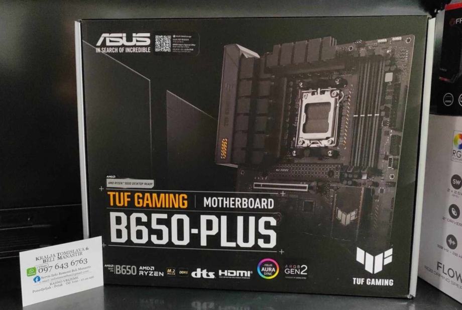 TUF GAMING B650M-PLUS, AM5, B650, DDR5, Broj utora 4, 4800 - 7600 MHz, PCIe 4.0 x16 1, SATA3 4, RAID 0, RAID 1, 8-kanalni audio, 1x