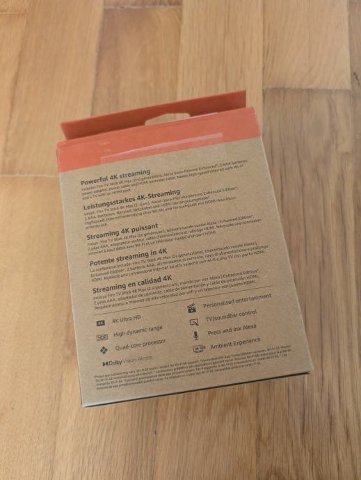 Amazon Fire TV Stick 4K Max - 2nd Gen (2023) - 16 GB. Max rezolucija 3840x2160p (4K) @ 60 fps. Uređaj je nov i dolazi u originalnoj ambalaži. Uređaj je otvoren za potrebe probe i nakon toga vraćen u ambalažu.