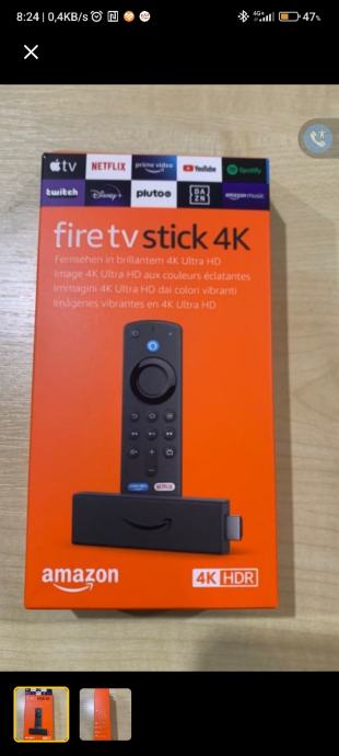 Molim da zovu samo oni koji znaju o čemu se radi. Zanči odličan uređaj ja sam kupio nešto novije i ovaj je viška te se prodaje ispod cijene , pogledajte ostale oglase Amazon Fire TV Stick 4K MAX player pretvara klasični TV u pametan i omogućuje reprodukciju multimedijskog sadržaja. Virtualni asistent Alexa (2. generacija) omogućuje pregledavanje web sadržaja i kontrolu glasa uređaja putem aplikacija. Vrlo je jednostavan za instalaciju i radi na principu Plug and play. Sve što trebate za korištenje uređaja je Wi-Fi veza, mrežno napajanje i HD TV. Isporučuje se s sustavom za upravljanje i Alexa daljinskim upravljačem, ali možete koristiti i pametni telefon s mobilnom aplikacijom Vatreni TV. Članovi Amazon Prime dobiti će neograničen pristup filmovima i TV epizodama. Nažalost kutija zagubljena ali zato na poklon gumena zaštita kontrolera