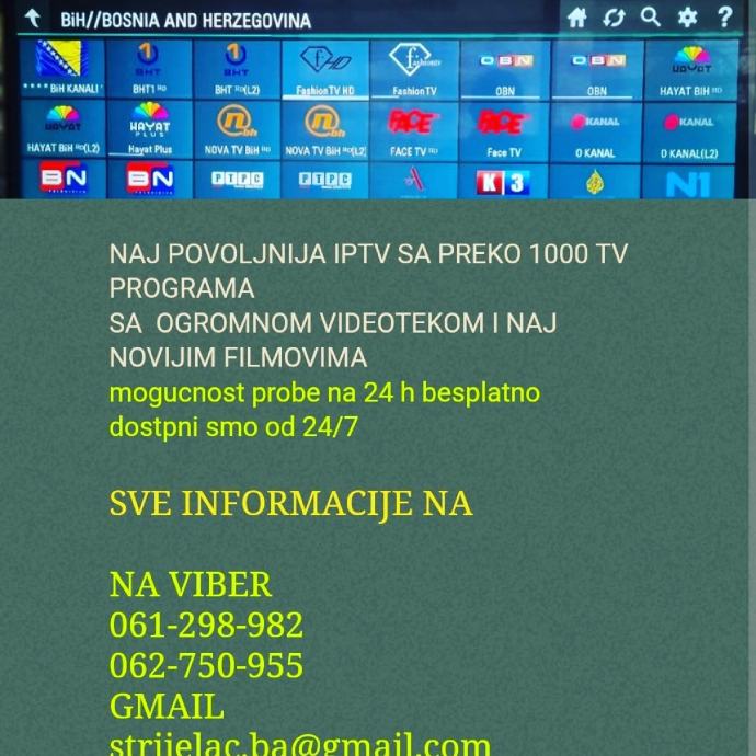 Android box sa ugrađenim programima,preko 1000tv programa uključujujući 180 sportski programa i 5000 filmova i serija za samo 80e na godinu,sve info na wiber:0038761298982