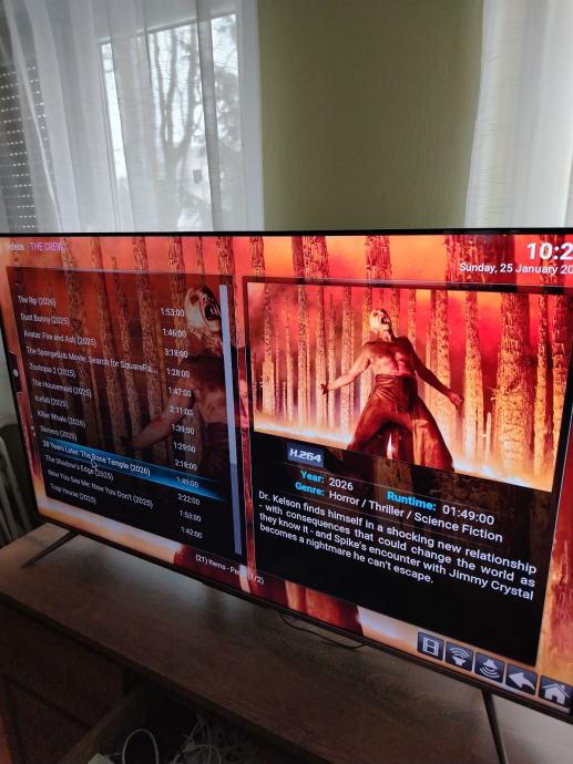 EON TV Box bez daljinskog upravljača ali dajem bežični miš kao zamjenu.Za gledanje EON kanala potrebna je aktivacija(pretplata) ali se na njemu može gledati Kodi sa tisućama kanala(vidi neke slike).