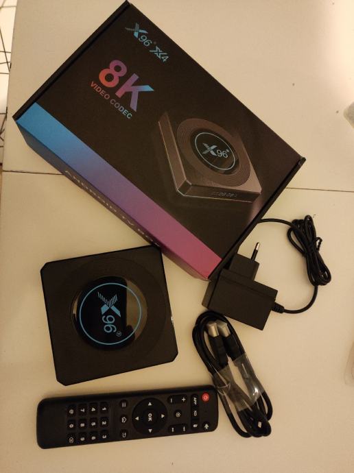 TV Box X96 X4,8K Smart TV Box ,Amlogic S905X4 64bit Quad Core 2.0 GHz,Android 11 ,8K HDR Smart Media Player ,LED display,KODI 19.5 ,4GB RAM DDR4, 32 GB ROM EMMC ,WiFi 2.4 i 5Ghz, GPU Arm Dvalin G53 750Mhz , Bluetooth 4.1, VP9,10 ,HDR 10,H264,265 Hevc,MPEG,MKV,MP4,XviD,DivX,Real video,Dolby Digital Plus,STB Emulator IPTV programi, Google play store,Hrvatski jezik.