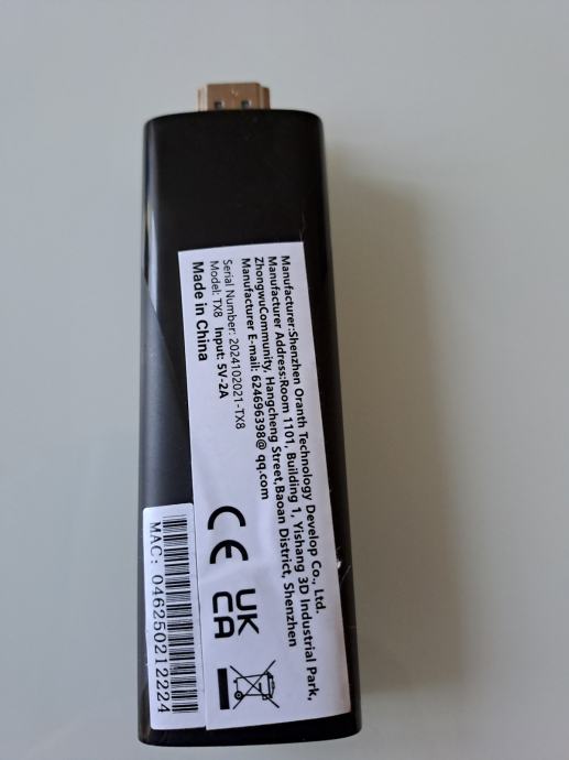 Tanix TX8 android tv stick,android 10, 16 GB/2 GB,wi-fi, 4 K, H265,quad core.Novo,sa kutijom i priključcima.