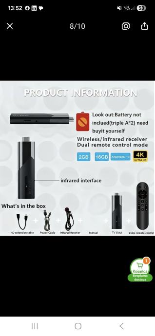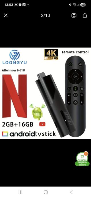 Prodajem TV stick, radi sa svakim TVom i monitorom koji ima HDMI prikljucak, 2GB RAM 16GB ROM, 64bit, ima aplikacije Youtube, Netflix, Amazon i druge.