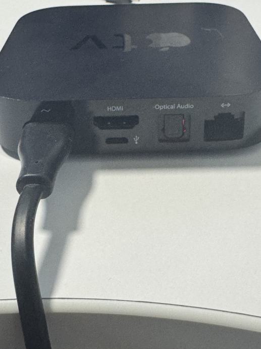Apple tv uredjaj, kabel za napajanje i daljinski, sve ispravno - sad aspojeno na monitor kad je slikano.