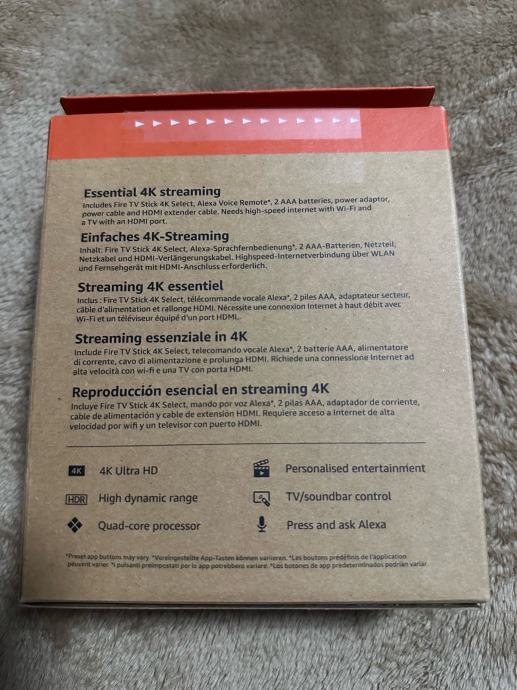 Prodajem potpuno novi Amazon Fire TV Stick 4K Select media player s 8 GB memorije i Wi-Fi 5 podrškom. Ovaj kompaktni uređaj pretvara svaki TV u smart TV s pristupom streaming platformama poput Netflixa i drugih. Dolazi s originalnim daljinskim upravljačem i svom potrebnom opremom, neotpakiran i spreman za upotrebu.