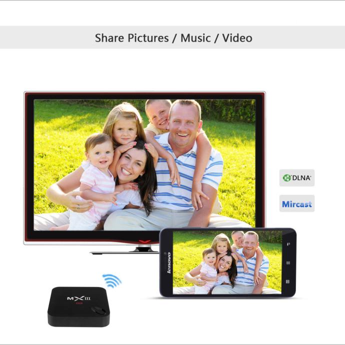 Najnoviji model Infinity XMBC (Kodi) Android IPTV box MXIII multimedijski je uređaj posljednje generacije sa najnovijom generacijom četverojezgrenog procesora Amlogic S802, izvrsni hardver omogućuje mu brojne multimedijske mogućnosti poput reprodukcije sadržaja u visokim rezolucijama 4K. Opremljen je Androidom 4.4.2 KitKat te sa brojim predinstaliranim aplikacijama koje će zadovoljiti 99,9% prosječnih korisnika. Mogućnost spajanja i na CRT televizore.
