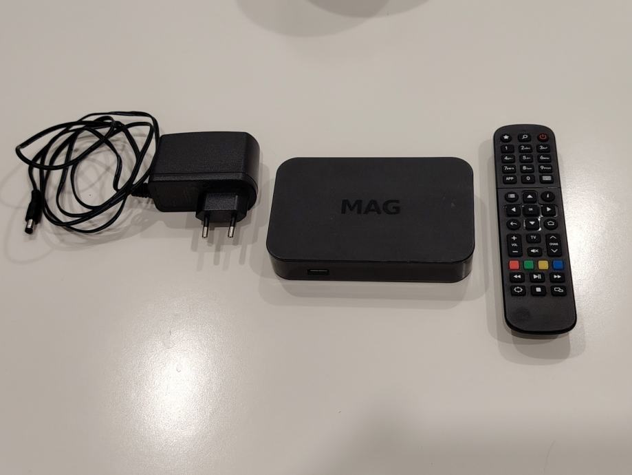 Prodajem Infomir MAG 522 IPTV player. Uređaj dolazi s daljinskim upravljačem i napajanjem. MAG 522 je multimedijalni set-top box koji omogućuje gledanje IPTV sadržaja, strćeaming servisa i multimedijskih datoteka. Opremljen je HDMI priključkom za prijenos slike na televizor i Ethernet priključkom za mrežnu vezu. Uređaj podržava full HD rezoluciju i ima korisnički jednostavan Linux OS operativni sustav. Kompletna oprema uključena - daljinski, adapter i uređaj. Sve je funkcionalnog i radi besprijekorno.