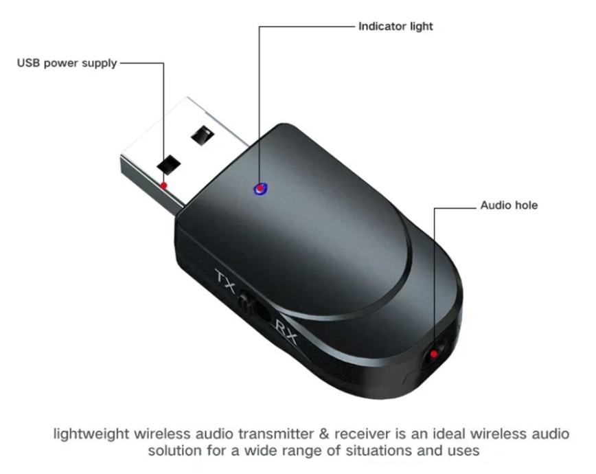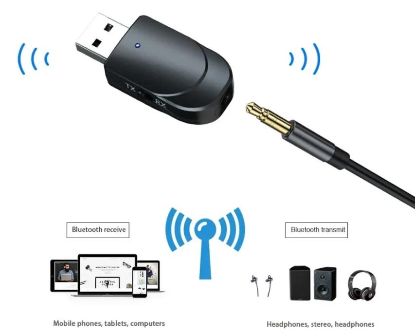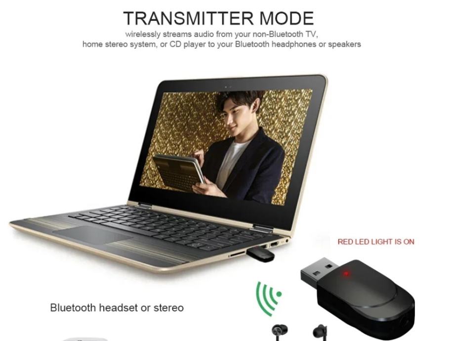 3. Način rada za audio odašiljač računala i TV-a: Bežično prenosi zvuk s računala ili televizora na Bluetooth slušalice ili zvučnik (putem USB priključka ne morate koristiti audio kabel od 3,5 mm).