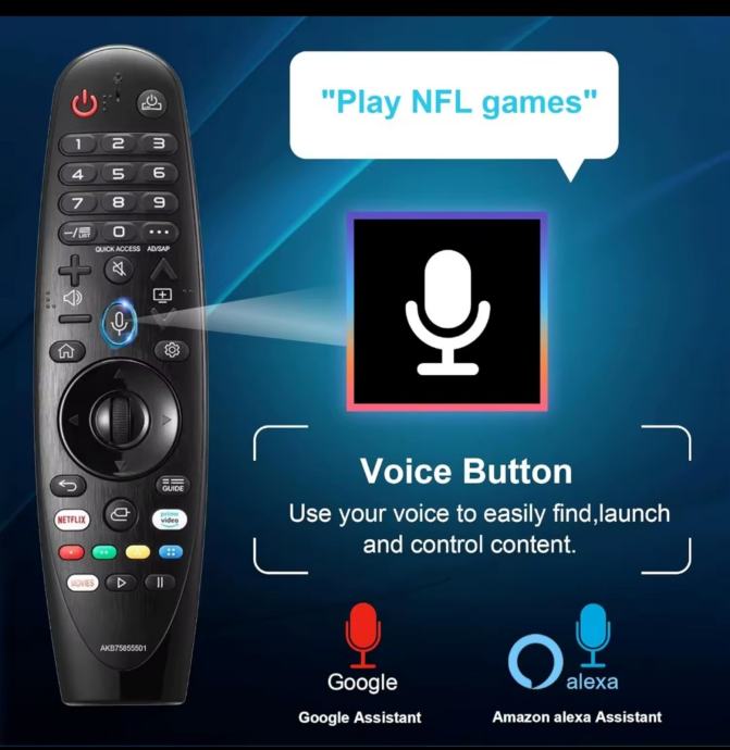Neki od ovih zamjenskih daljinskih ne podržavaju opciju "VOICE and MOUSE / RED POINTER(crvena strelica), ali bez ikakvih problema zahvaljujući središnjem, aktivnom upravljačkom panelu (< > )sa kotačićem( OK ), učinkovito i brzo rješava sve zadaće vezane za upravljanje LGTV-om!
