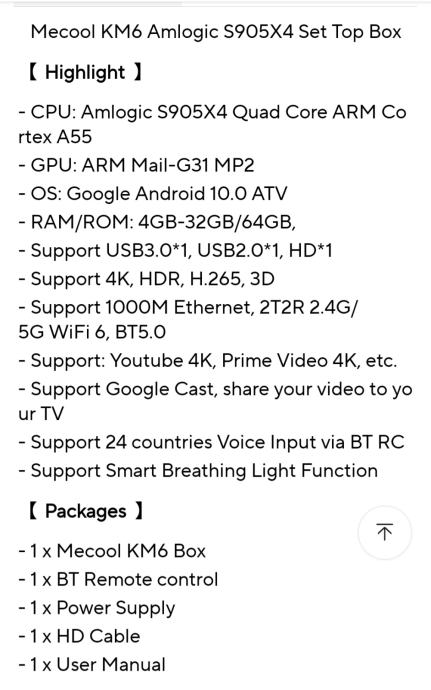 Mecool KM 6 4gb 64 gb Amlogic s905x4