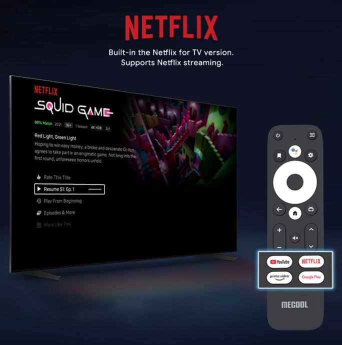 Pretvorite svoj televizor u centar pametne zabave s MECOOL KM2 PLUS Android TV Box. Certificiran od strane Netflixa i Googlea, ovaj 4K TV Box donosi kinematografsku jasnoću Netflix filmova i serija direktno u vaš dnevni boravak.