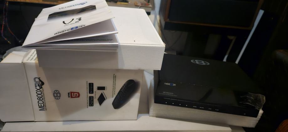 Media Player MEDE8ER MED800X3D/WP FULL 3D / WiFi, player je gotovo nekorišten, folija je još preko ekrana, zapakiran u originalnu ambalažu, uputstva i svi prateči kablovi,moguća zamjena uz doplatu 092/2944-771