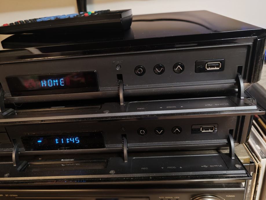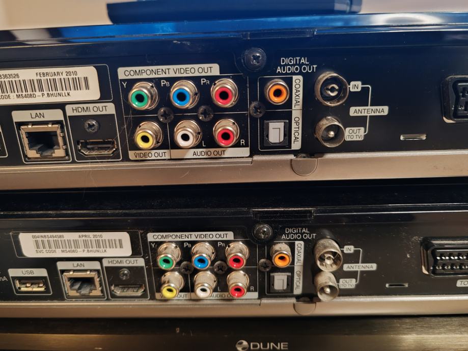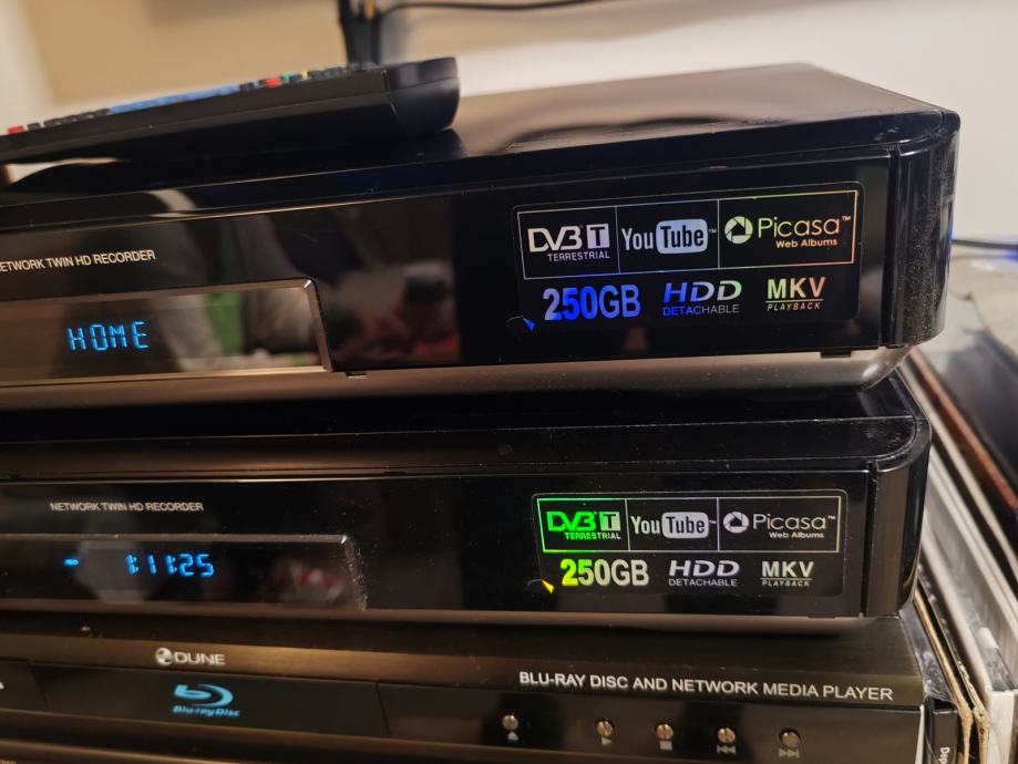 2 tehnički ispravna i vrlo uščuvana uređaja s jednom daljinskim upravljačem. Integrirani HDD diskovi od 250 GB, mogućnost ubacivanja diska s prednje strane uređaja.