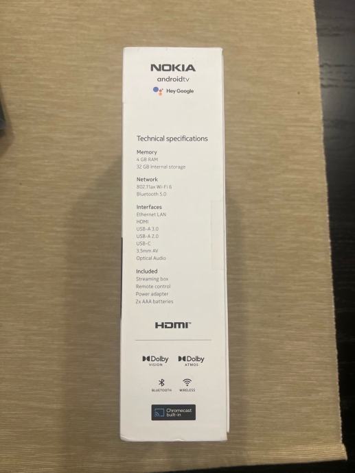 Nokia box 8010, 4 gb rama i 32 gb interne memorije, korišten svega par puta, dobiven na poklon. Nokia Streaming Box 8010 je napredno multimedijsko središte koje omogućuje streaming sadržaja u 4K rezoluciji. Pokreće ga četverojezgreni procesor Amlogic S905X4-K s integriranom grafikom Mali-G31 MP2, uz 4 GB RAM-a i 32 GB interne memorije. Radi na operativnom