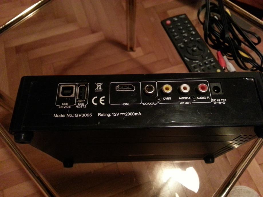 Media Player Noontec V7 prodajem zbog nekorištenja. Uređaj je kao nov, isproban da radi, spojen s računalom i opet zapakiran. Dolazi s daljinskim upravljačem, uputama i potrebnom dokumentacijom.