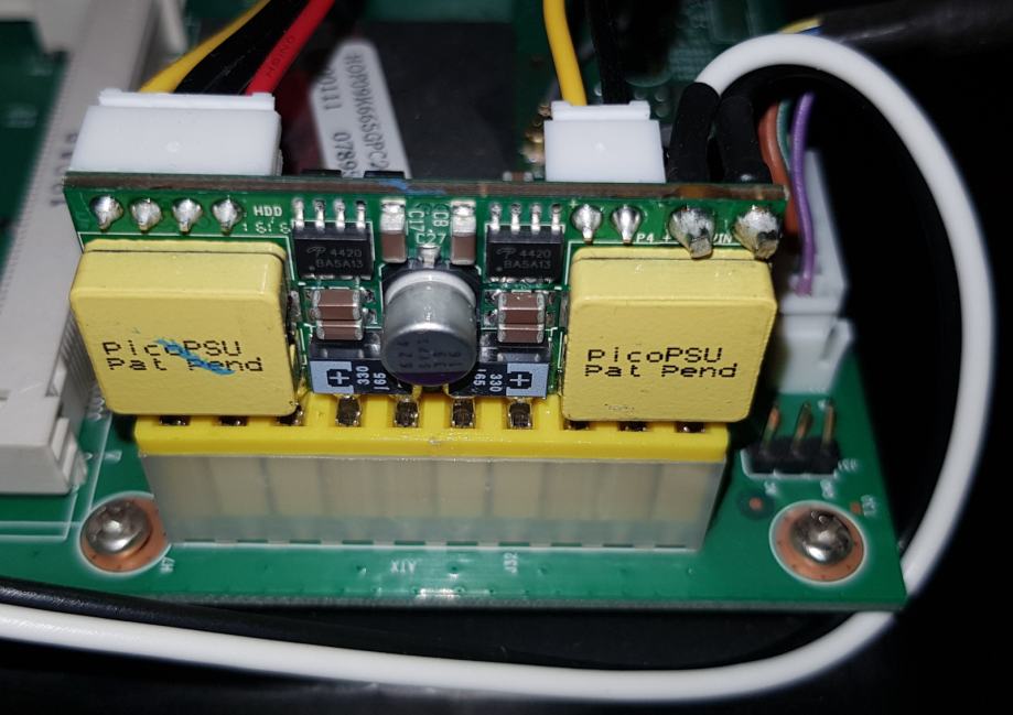 Na uređaju sam modificirao napajanje (većina C-300 je imala probleme oko kvarljivih napajanja). Postojeće je maknuto i stavljeno je jako i kvalitetno picoPSU 90W sa ispravljačem 12V 8.5A.