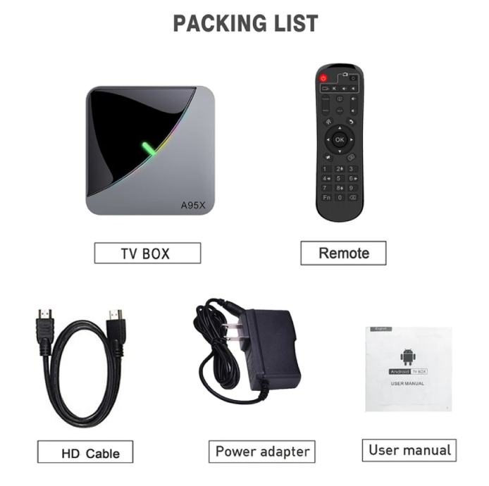 U paketu dobivate android box, strujni adapter, daljinski upravljač i HDMI kabel (sve što vam je potrebno)