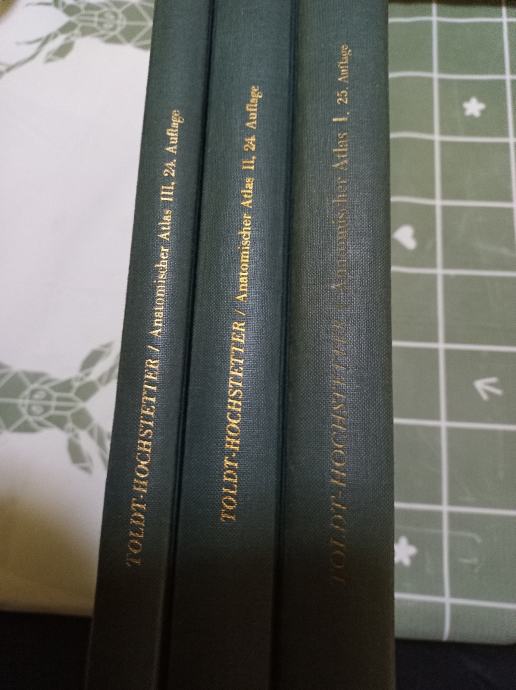 Komplet od 1-3 sveska, tvrdi uvez, vjerojatno najbolji, kultni anatomski atlas čovjeka na svijetu ikada napisan, sa jedinstvenim prikazima svih anatomskih struktura čovjeka, od koštanog, zglobno mišićnog sustava, kompletne organologije, CŽS, te fantastičnim histološkim prikazima, pisan u kombiniranoj crno-kolor verziji, sa ne nadmašnim prikazima anatomskih struktura, klasik među anatomskim atlasima čovjeka ikada napisanim u svijetu!