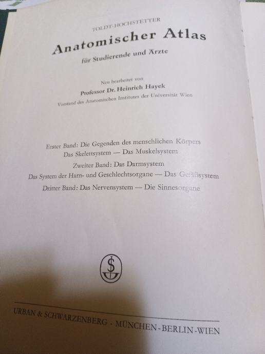 ORIGINALNO NJEMAČKO IZDANJE, ANATOMSKOG ATLASA,"TOLDT HOCHSTETTER",